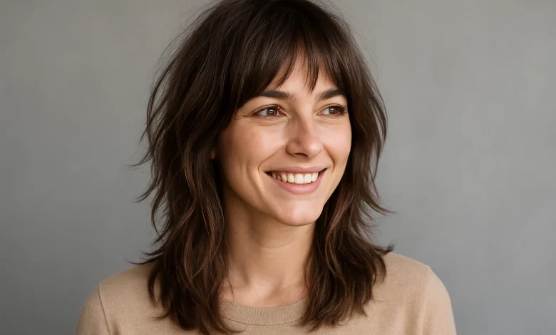 O shaggy também favorece rostos mais delicados ou com formato oval, já que a franja e as camadas moldam as laterais do rosto.