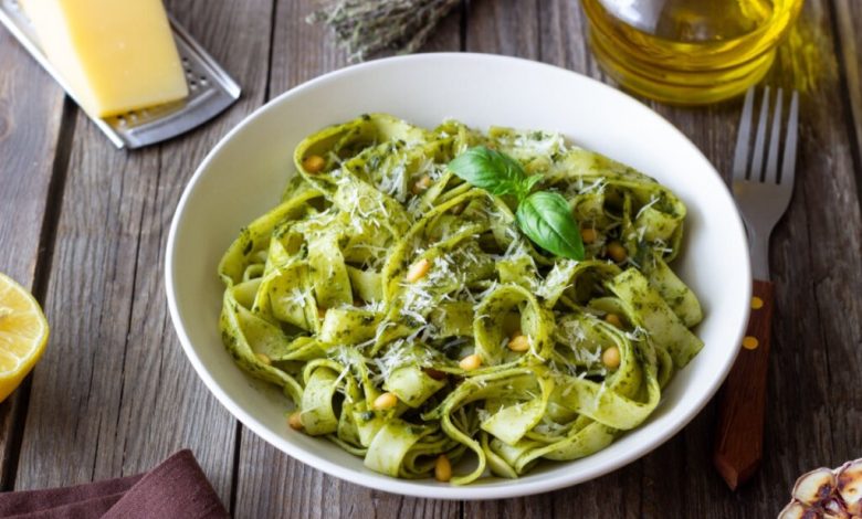 Fettuccine ao pesto com parmesão (Imagem: Vladislav Chusov | Shutterstock)