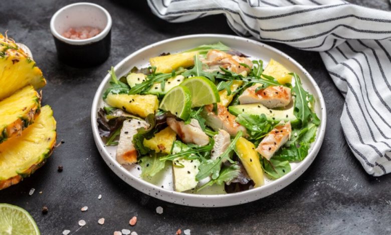 Salada detox de frango grelhado com abacaxi