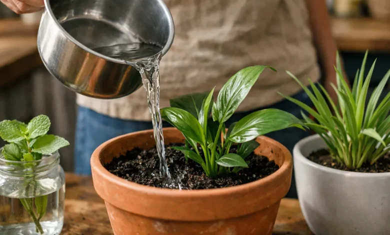 Ao longo do tempo, jardineiros mais experientes aprenderam isso por observação. Não veio de rótulo, nem de embalagem chamativa. Veio de teste, erro e comparação: plantas regadas só com água da torneira versus plantas que, vez ou outra, recebiam essa água reaproveitada. O resultado aparecia nas folhas mais verdes, nos caules mais firmes e no ritmo visivelmente mais rápido de crescimento.