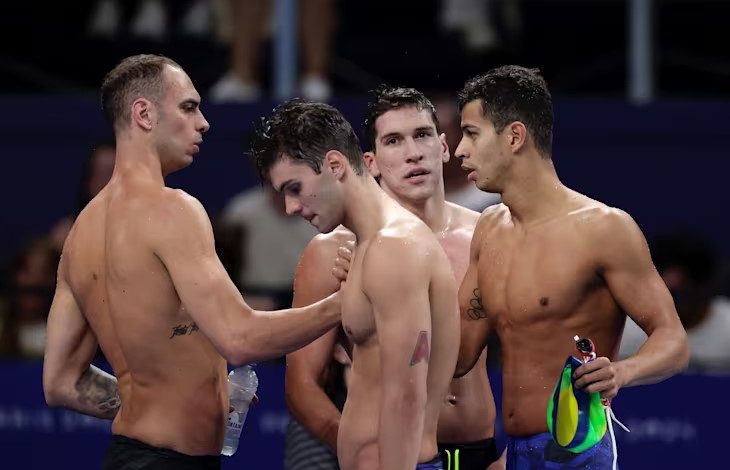 Equipe que tinha o nadador de Itaguaí faz o 12º melhor tempo nas eliminatórias e não disputará medalha na Olimpíada de Paris-2024