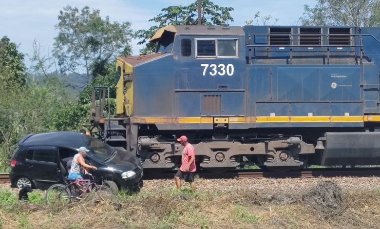 Na manhã desta quarta-feira (27), um carro foi atingido por um trem de carga na passagem de nível localizada na altura da Rua Alencar Guimarães com a Rua 12, próximo à área da Nuclep, em Vilar dos Coqueiros, Itaguaí.