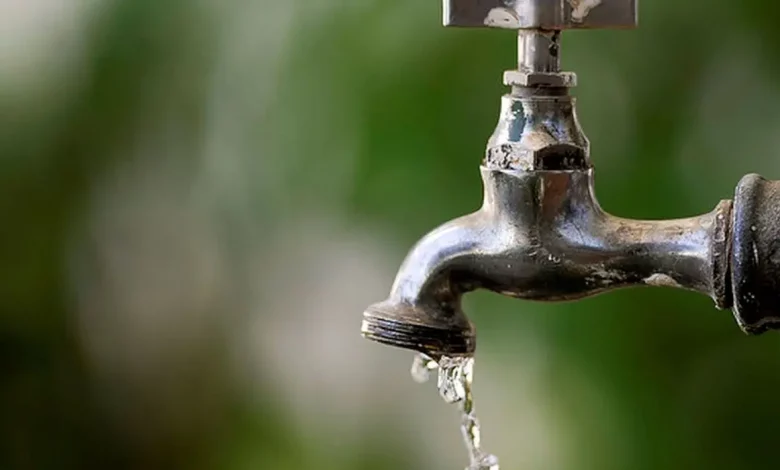 Torneira com pouca água ilustra a interrupção temporária no abastecimento em Muriqui