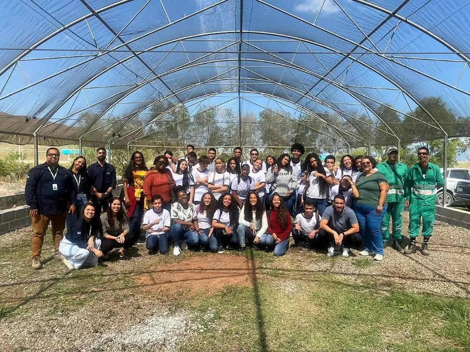 Alunos do CIEP Irmã Dulce, equipe da Ciclus Rio e colaboradores durante o início do projeto socioambiental no viveiro revitalizado do CTR Rio, em Seropédica (FOTOS DIVULGAÇÃO/CICLUS RIO)