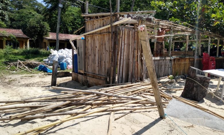 Durante a ação, funcionários da prefeitura derrubaram construções irregulares em Área de Proteção Ambiental (APA). Dois quiosques construídos com bambus e madeiras na areia da praia foram derrubados. Segundo moradores, invasores chegam e constroem sem nenhuma autorização.