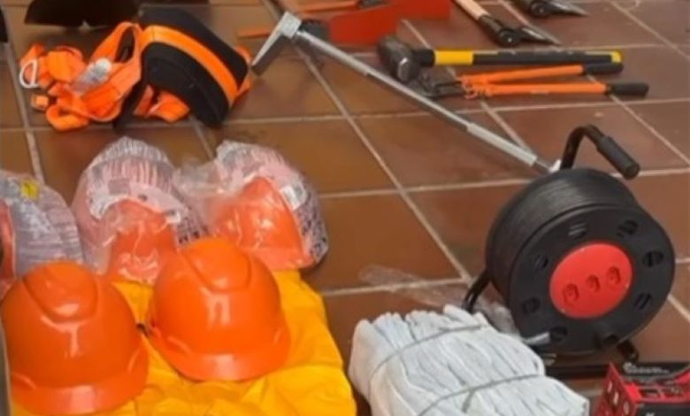 Entre os materiais entregues estão capacetes, luvas e óculos de proteção, lanternas e holofotes, bombas de esgotamento, motosserras, motopodas e ferramentas de corte. O reforço inclui ainda equipamentos essenciais para resgate, como cordas, mosquetões e itens específicos para rapel.