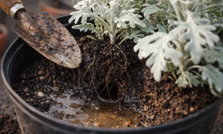 Drenagem é o detalhe que muitos ignoram, mas que decide silenciosamente o destino da cinerária. Quando a drenagem falha, a planta começa a definhar aos poucos, mesmo que folhas ainda pareçam firmes e viçosas.