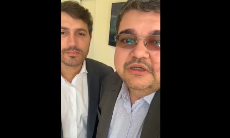 O prefeito Rubem Vieira (D) em transmissão ao vivo no Facebook ao lado do deputado federal Luciano Vieira (Reprodução)