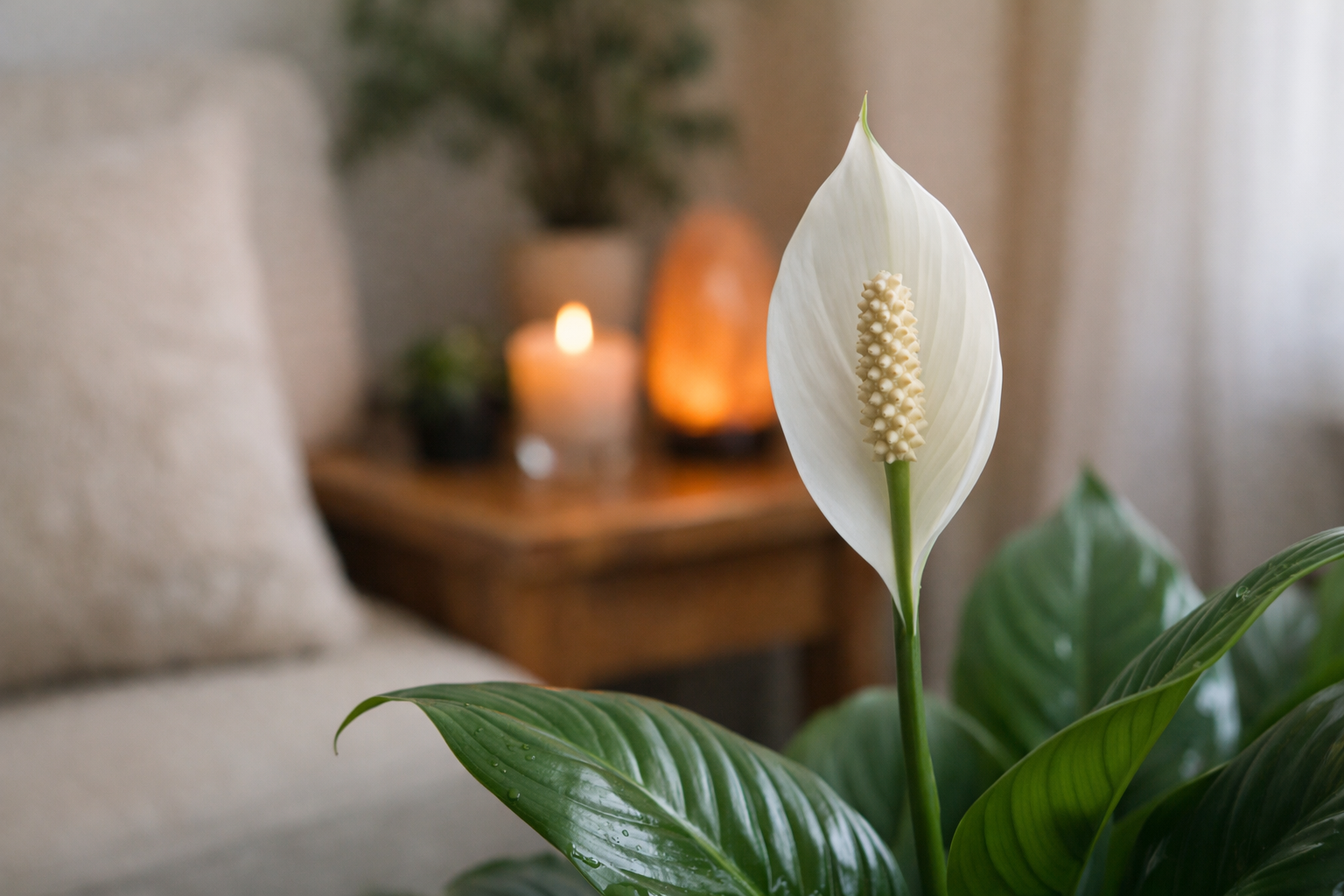 O lírio-da-paz ocupa uma posição especial no Feng Shui por seu formato delicado, sua coloração neutra e sua incrível capacidade de “acalmar” visualmente o ambiente. A planta está associada ao elemento Água, o que a torna uma das favoritas para trabalhar emoções, intuição e fluidez dentro de casa. Seu papel vai além da beleza — ela atua como um filtro emocional, suavizando a energia que circula, principalmente em ambientes com excesso de tecnologia ou tensão acumulada.