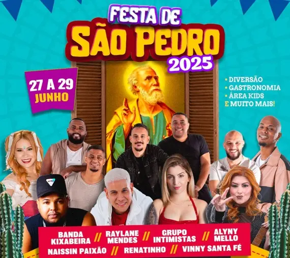 Festa de São Pedro em Itacuruçá terá shows de Alyny Mello, Banda Kixabera, Renatinho, Raylane Mendes, Vinny Santa Fé, Naissin Paixão e Grupo Intimistas (FOTO DIVULGAÇÃO)