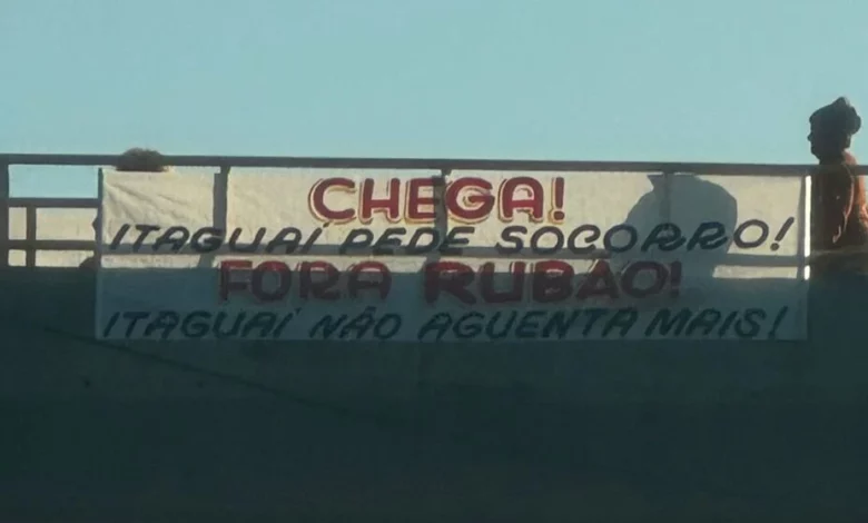 “Fora Rubão!”: protesto anônimo ocupa rodovia em Itaguaí