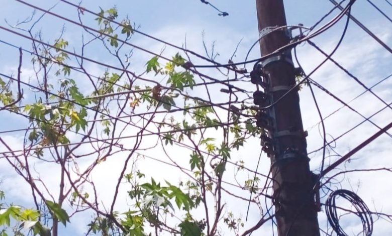 A moradora conta que os próprios funcionários da Light disseram que primeiro é preciso podar galhos de árvores próximas à rede elétrica para depois restabelecer a energia (Arquivo pessoal)