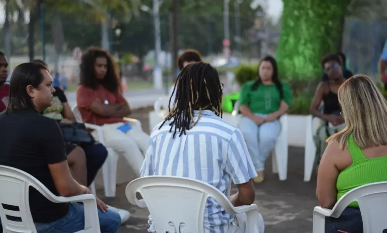 Participantes se reúnem em roda de conversa durante escuta pública promovida pela Secretaria Municipal de Cultura de Itaguaí (FOTO TIAGO CIDÃO/SECRETARIA DE CULTURA DE ITAGUAÍ)