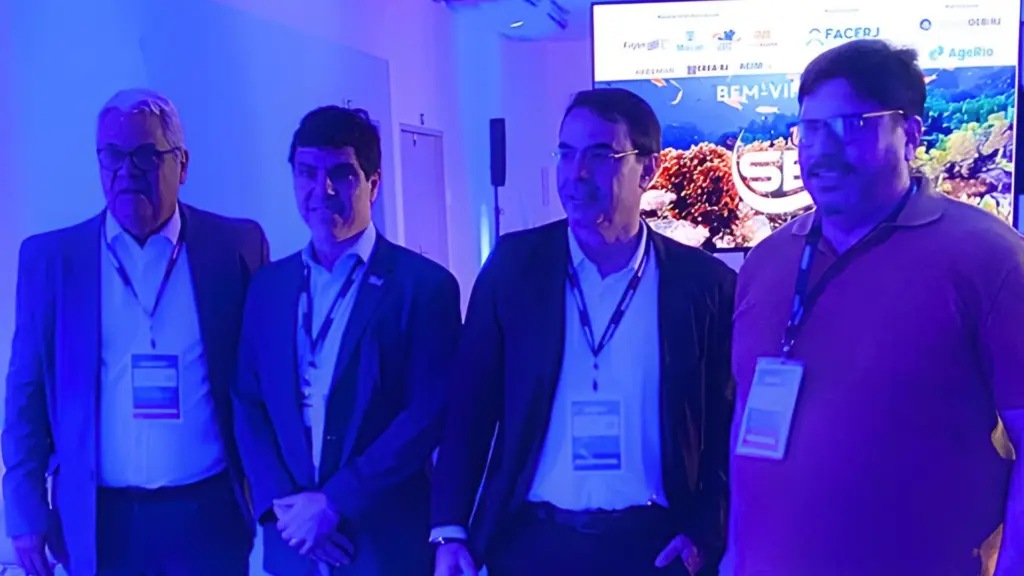 A equipe do Jornal Atual acompanhou o Seminário de Economia do Mar, realizado na arena temática do evento. Durante os preparativos para a abertura, Marcelo Godinho, diretor-presidente do Atual, conversou com Julio Villas Boas, diretor do Conselho Regional de Engenharia e Agronomia do Rio de Janeiro (CREA-RJ), João Leal, coordenador de Energia Nuclear da Secretaria de Estado de Energia e Mar (Seenemar), e Renato Regazzi, professor de Economia do Mar do Insper e diretor da Agência de Fomento do Estado do Rio de Janeiro (AgeRio).