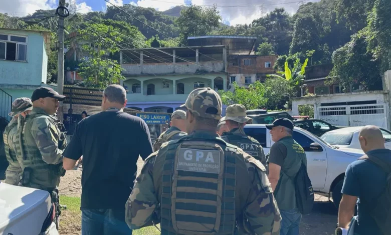 Agentes do Grupamento de Proteção Ambiental (GPA) e equipes da Prefeitura de Mangaratiba durante operação