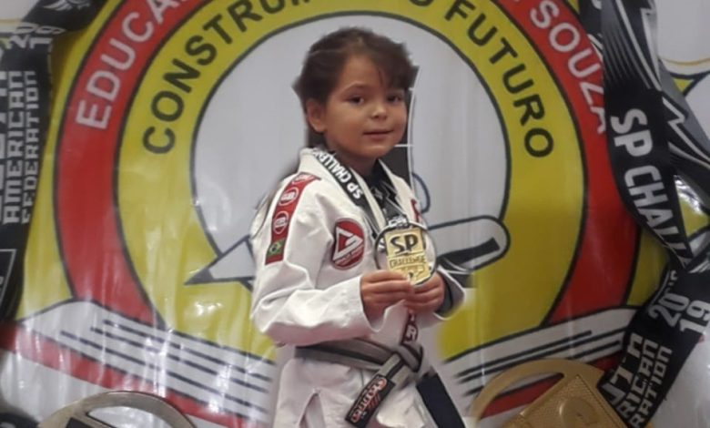 CAMPEÃ A pequena Maria Clara Botelho, de 7 anos, a Maria Pitbull, conquistou duas medalhas de ouro no Internacional Challenger de Jiu-Jitsu, realizado no domingo (31), no município de Itapecerica da Serra, em São Paulo. O lugar mais alto do pódio da pequena Maria Pitbull, moradora do bairro do Engenho, em Itaguaí, foi em duas categorias: Kids 2 e Festival Kids.