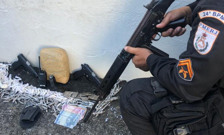 De acordo com a polícia, os agentes foram recebidos a tiros e houve confronto. Na ação, foram apreendidas duas pistolas, um rádio transmissor, uma granada e uma quantidade de drogas.