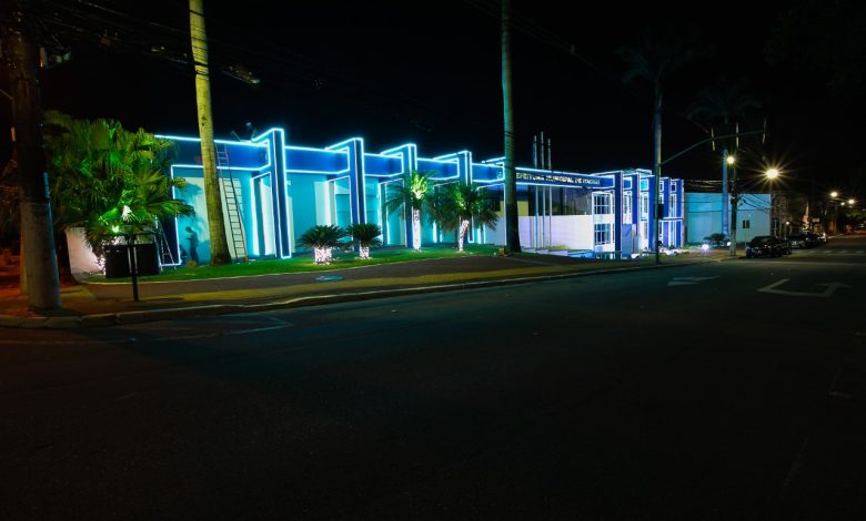 A empresa responsável pelo serviço de instalação das luzes de led começou a enfeitar as ruas na quinta-feira (11). A foto principal desta matéria mostra a fachada da prefeitura iluminada em azul. Além da sede do Executivo, recebem enfeites com luzes o Parque Municipal, o Calçadão, e árvores na rua General Bocaiúva.