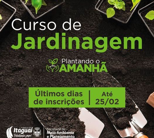 A Prefeitura de Itaguaí, por meio da Secretaria Municipal de Meio Ambiente e Planejamento (SMMAP), oferece o curso de jardinagem “Plantando o Amanhã”. O curso é totalmente gratuito. São 60 vagas para quem deseja aprender a desenvolver técnicas básicas de implantação e manutenção de jardins. Segundo a prefeitura, pessoas interessadas ou até as que já são profissionais vão aproveitar bastante o conteúdo do curso.