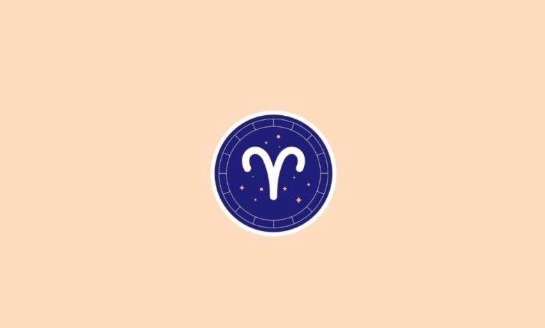 Ilustração do signo de áries em um círculo azul em cima de um fundo bege