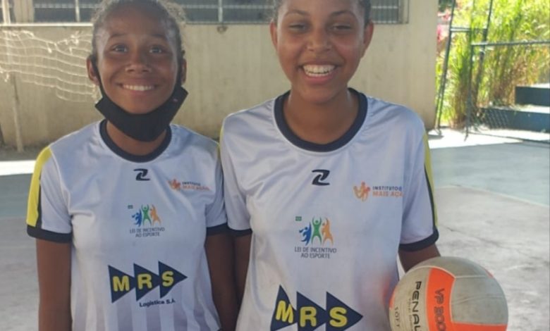 Sorridentes, alunas de voleibol no Núcleo Itaguaí em um intervalo: projeto beneficia dezenas de jovens com disciplina e valores sociais (Divulgação / Instituto Ação)