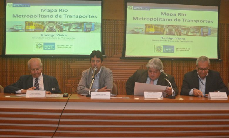 O secretário de estado de Transportes, Rodrigo Vieira, lançou, na segunda-feira (3), o “Mapa Rio Metropolitano de Transportes”, ferramenta instituída através da Resolução 1.328, de 27 de novembro de 2018, com o objetivo de padronizar a visualização de todos os serviços de transportes de alta e média capacidades e as respectivas integrações disponíveis aos usuários. A cerimônia, ocorrida no Palácio Guanabara, contou com a presença do secretário da Casa Civil e Desenvolvimento Econômico, Sérgio Pimentel, e do subsecretário de Transportes, Delmo Pinho.