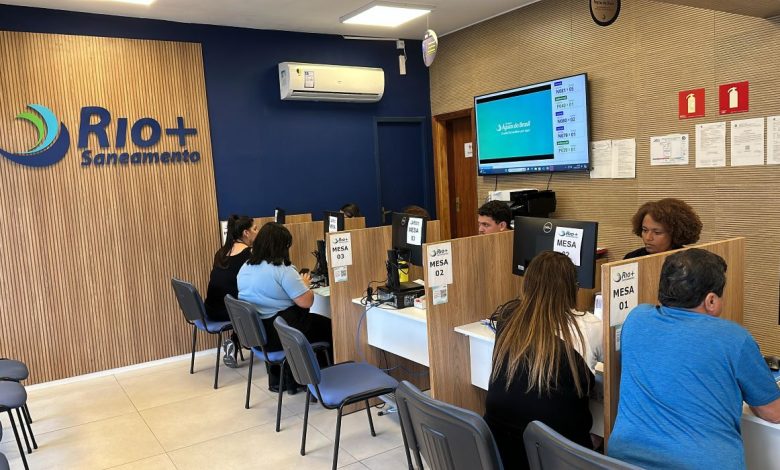 Atendimento presencial da Rio+Saneamento em unidade física da concessionária; durante o Carnaval, lojas fecham