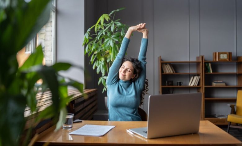 A cada 50 ou 60 minutos, levante-se e movimente-se. Faça alongamentos e pequenas caminhadas. Isso alivia a pressão sobre os músculos e ativa a circulação sanguínea.