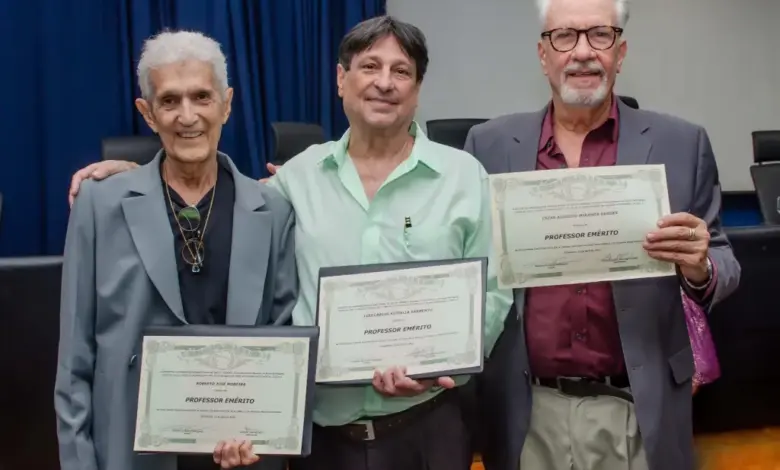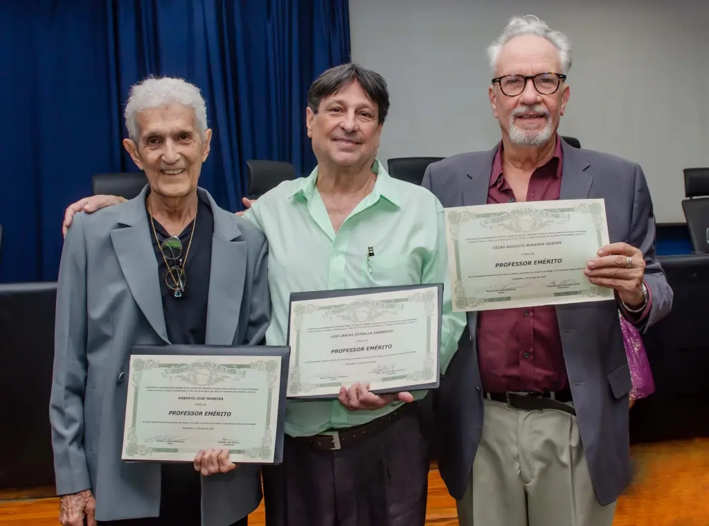 Cerimônia reconhece trajetórias de Cezar Guedes, Roberto Moreira e Luiz Estrella na universidade