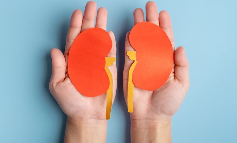 Uma mão segurando a figura de um rim