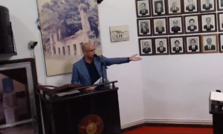 O vereador Rodrigo Bondim começou seu discurso citando trechos da música “O tempo não para”, de Cazuza. Em seguida, Bondim falou sobre o pagamento de um terço das férias dos servidores de Mangaratiba.